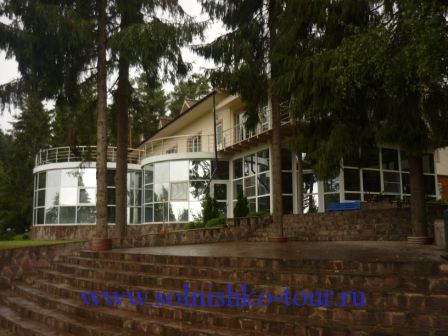 въезд на территориюотеля "Хижина" ресторан и административное здание одноэтажные корпуса