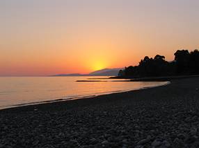 Береговая линия Абхазии – 210 км широких галечных пляжей. Побережье в значительной степени изрезано –: поросший реликтовыми соснами мыс образует тихую Пицундскую бухту, а мыс Красный Маяк – Сухумский залив.
